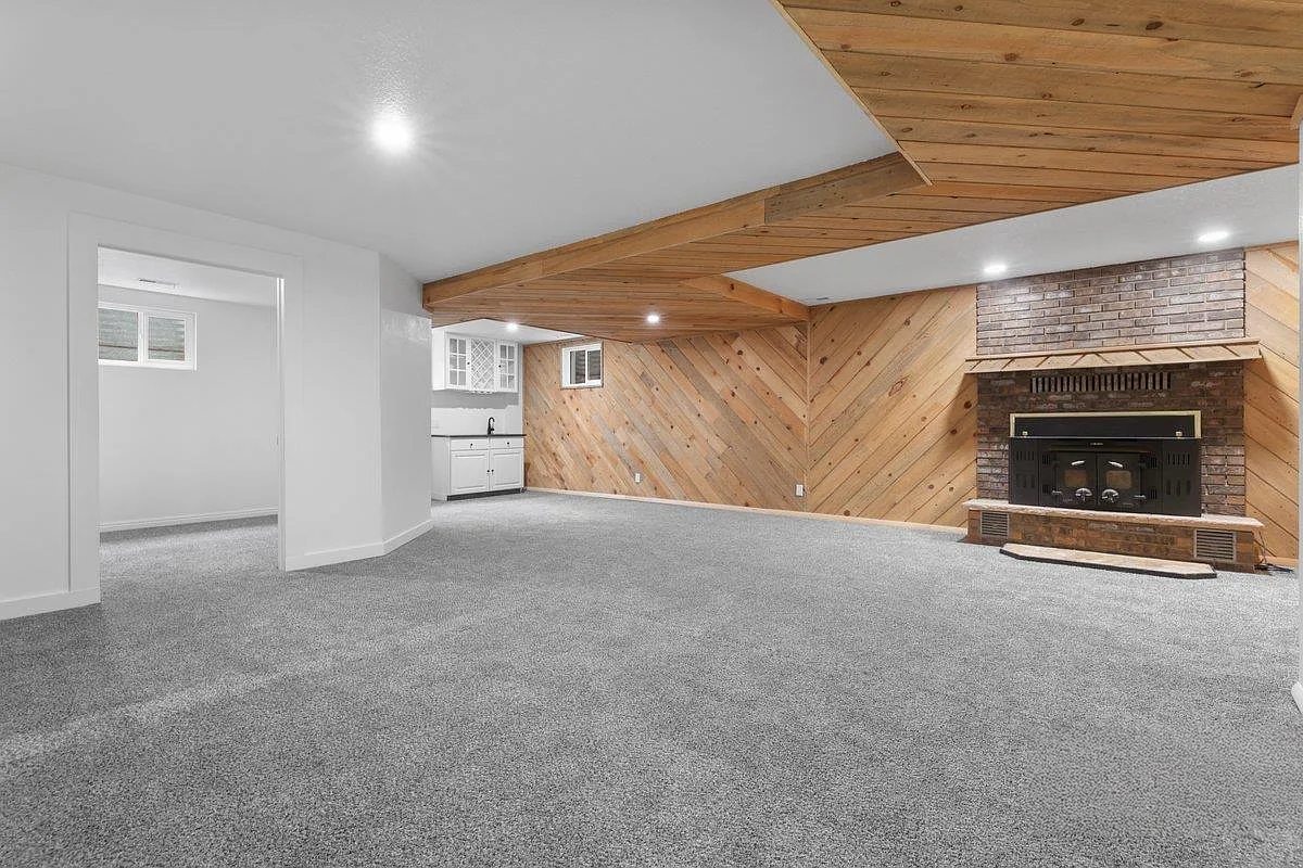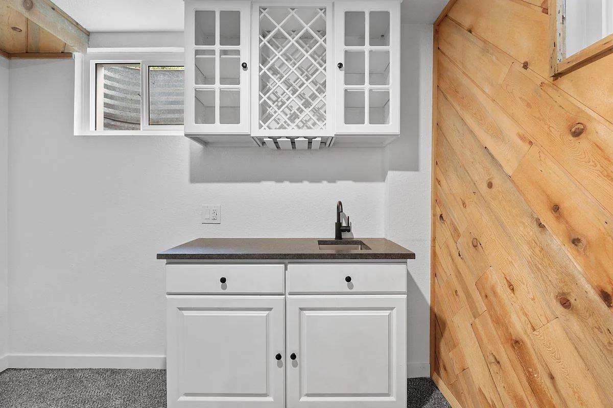 We installed a new kitchen island, upgraded countertops, and built a downstairs wet bar featuring a custom wine cabinet.