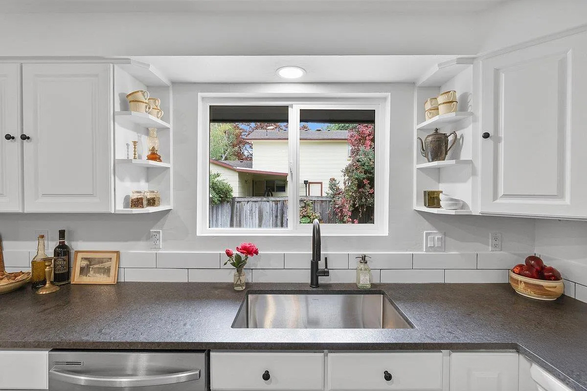 We removed walls and reworked the floor plan to open up the space—guided by a structural engineer and supported by custom framing and a new kitchen window install.