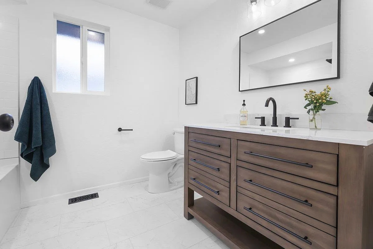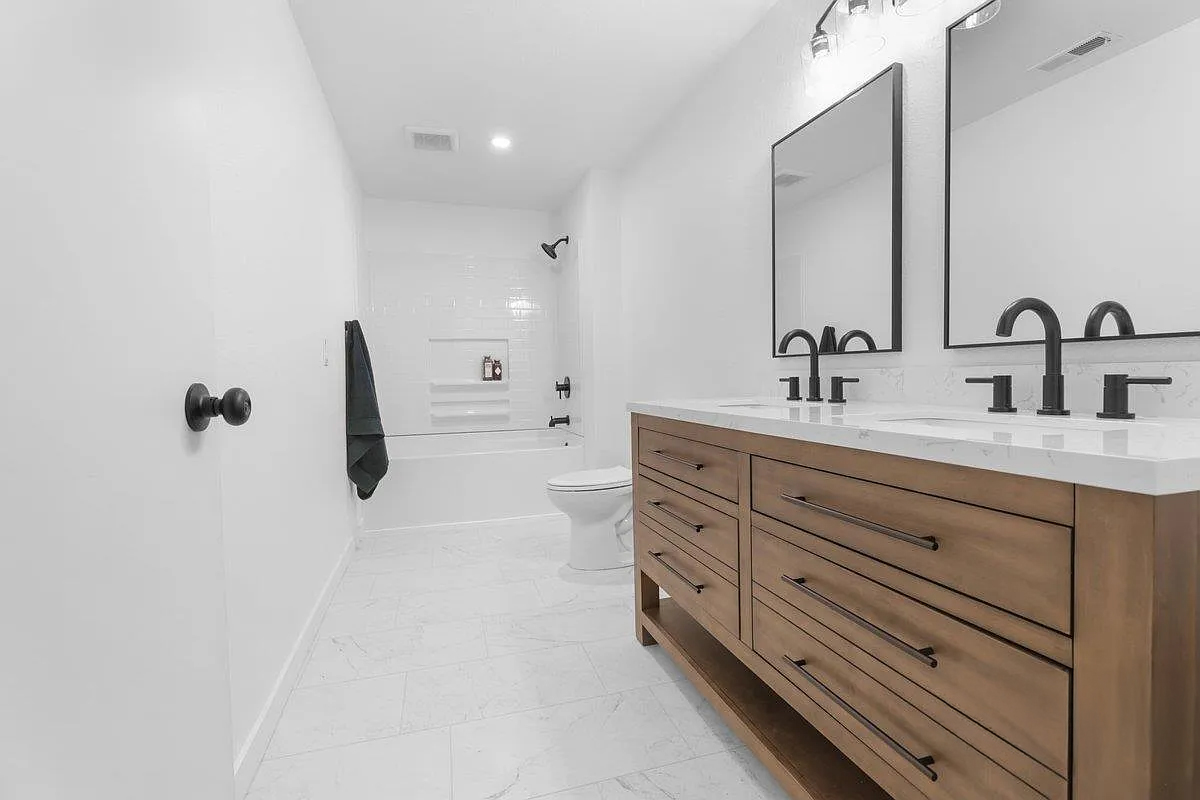 All bathrooms were completely gutted and reworked with new vanities, toilets, modern fixtures, and fresh tiling.